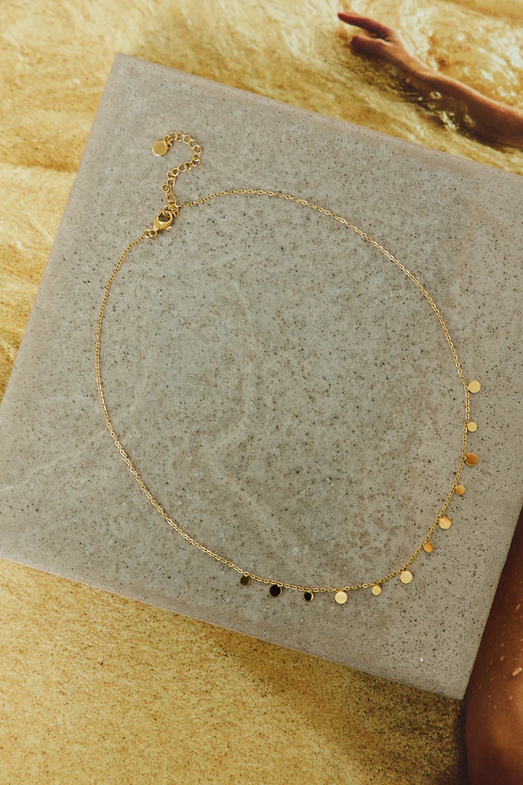 Embrace your true Golden Hues and show the world your classy side. This lovely necklace features a choker style with gold drop pendants throughout. PERF for any night out.